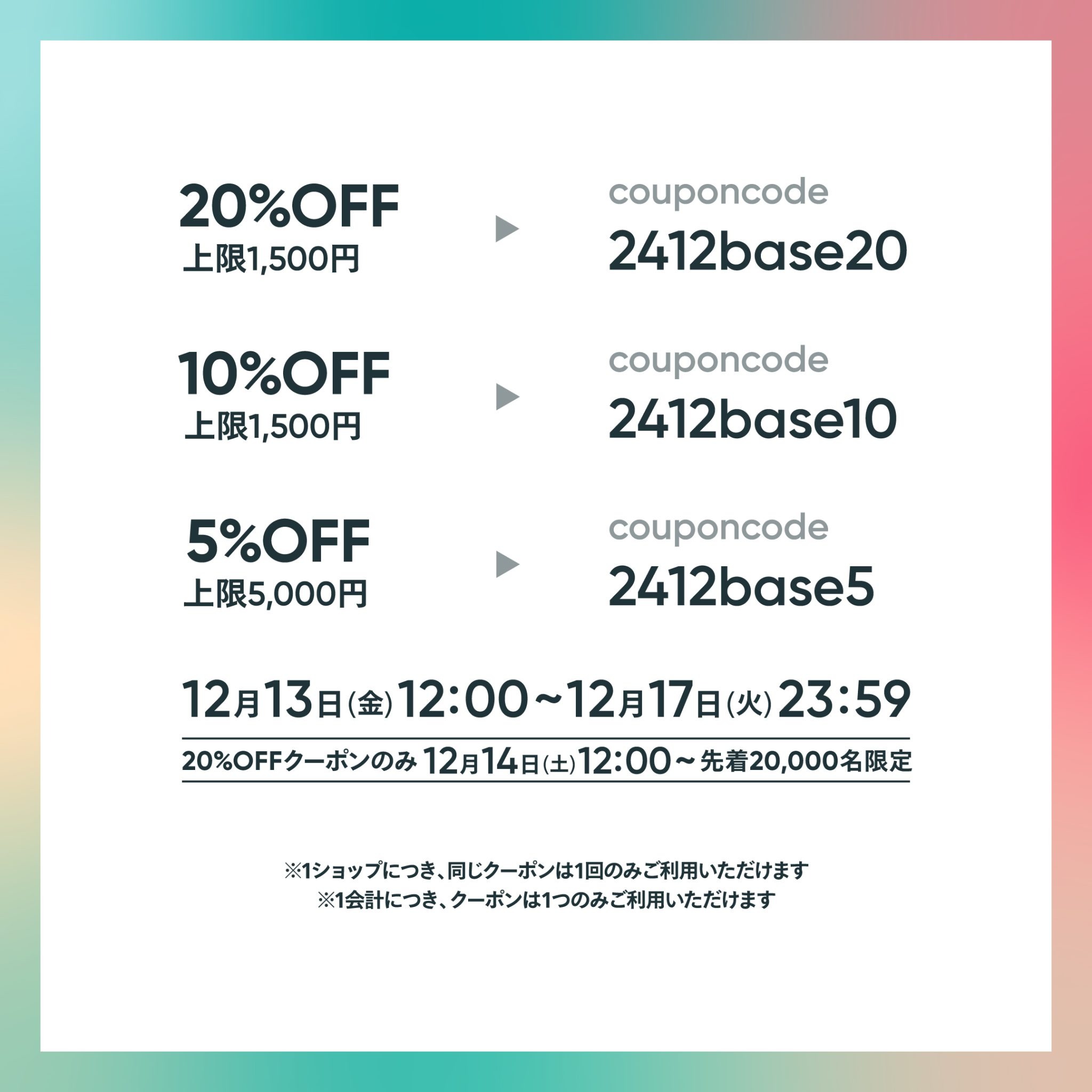 ※20%OFFクーポンのみ、12/14(土)お昼12:00~先着20,000名限定