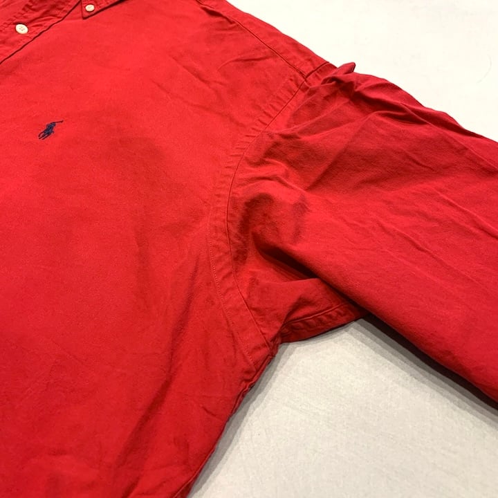 ラルフローレン 古着 長袖シャツ 刺繍ロゴ レッド XXL