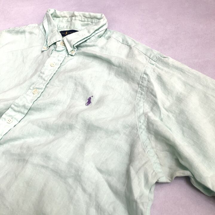 ラルフローレン 古着 半袖シャツ 刺繍ロゴ ライトグリーン 2XL