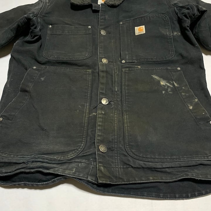 カーハート 古着 ダックジャケット 襟ボア ブラック 企業ロゴ S