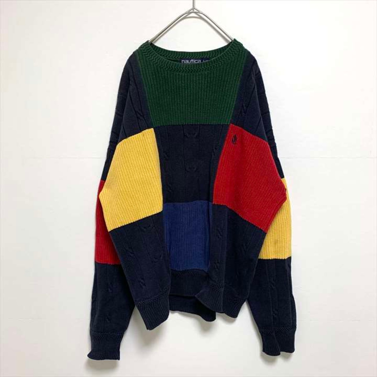 90s 古着 ノーティカ ニットセーター クレイジーパターン ワンポイントロゴ
