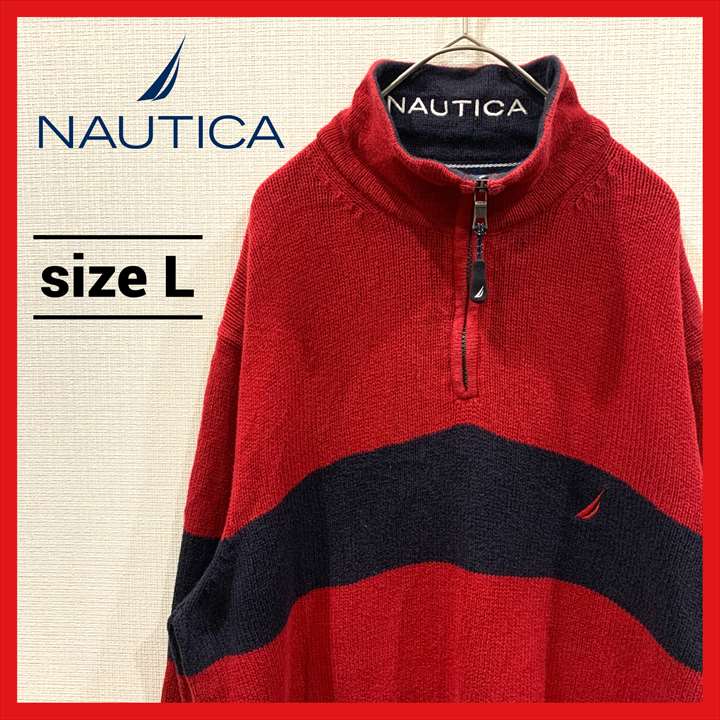 90s 古着 ノーティカ ニットセーター プルオーバー ワンポイントロゴ