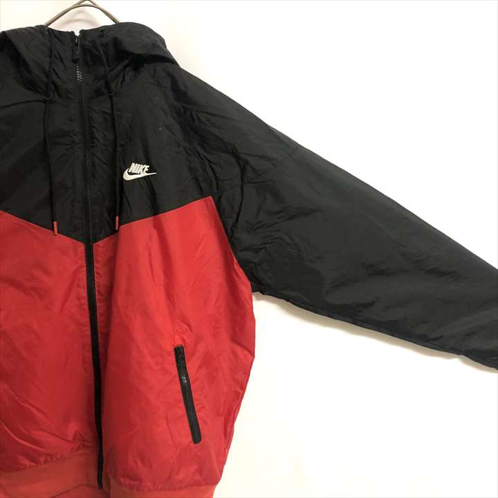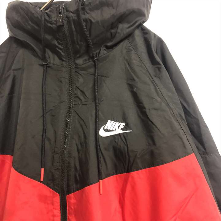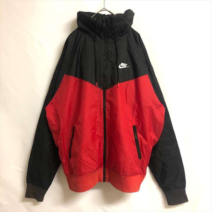 90s 古着 ナイキ NIKE ナイロンジャケット ワンポイントロゴ 赤 黒