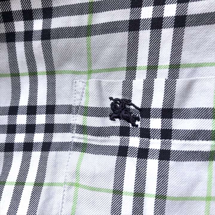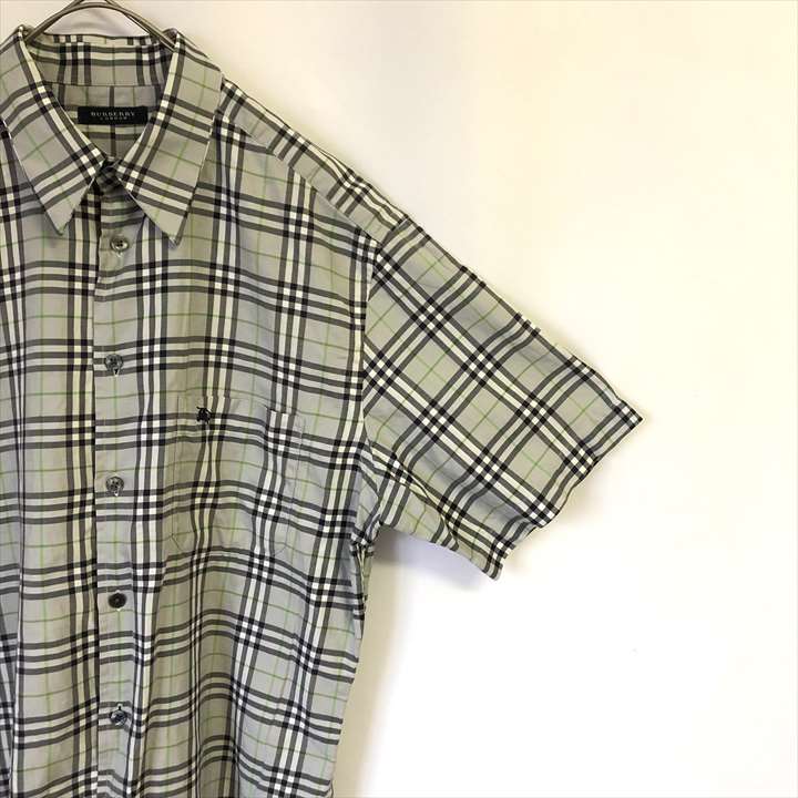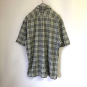 90s 古着 バーバリー 半袖チェックシャツ 刺繍ロゴ ワンポイントロゴ