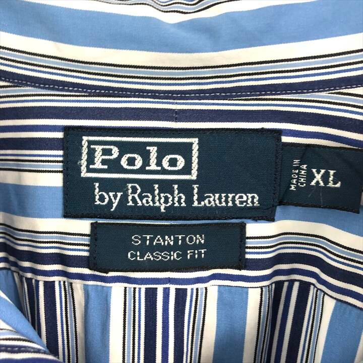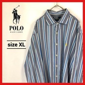 90s 古着 ポロラルフローレン シャツ オーバーサイズ 刺繍 ストライプ XL