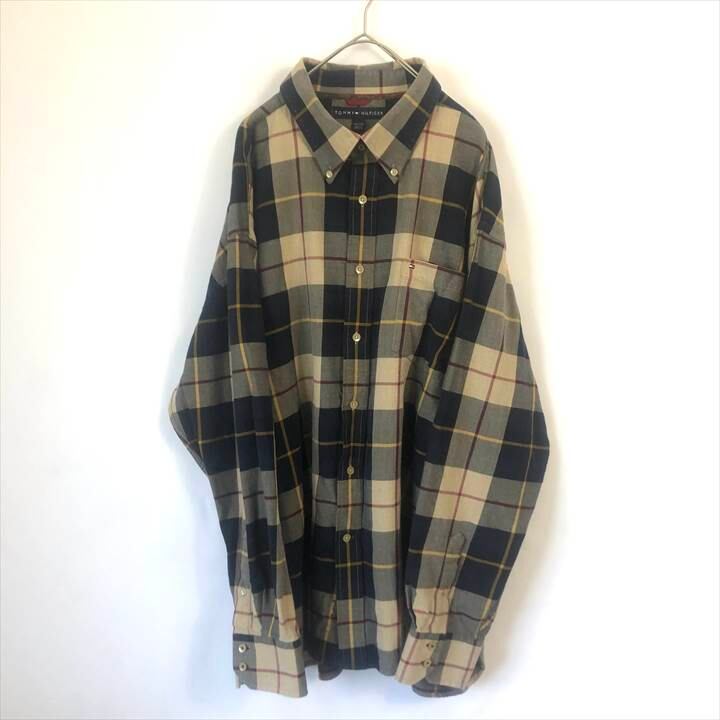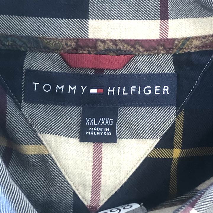 90s 古着 トミーヒルフィガー チェックシャツ フラッグロゴ 刺繍 XXL