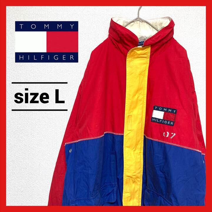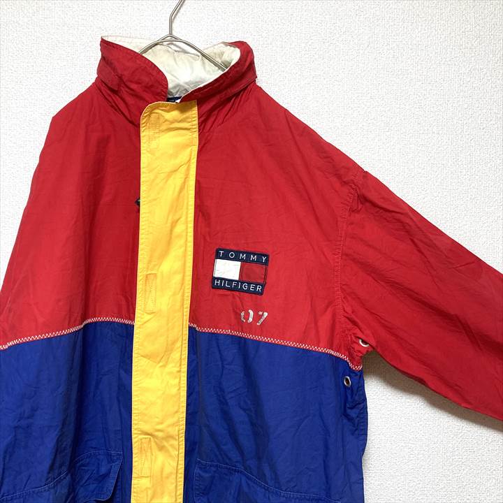 90s 古着 トミーヒルフィガー ナイロンジャケット 刺繍ロゴ フラッグタグ L