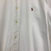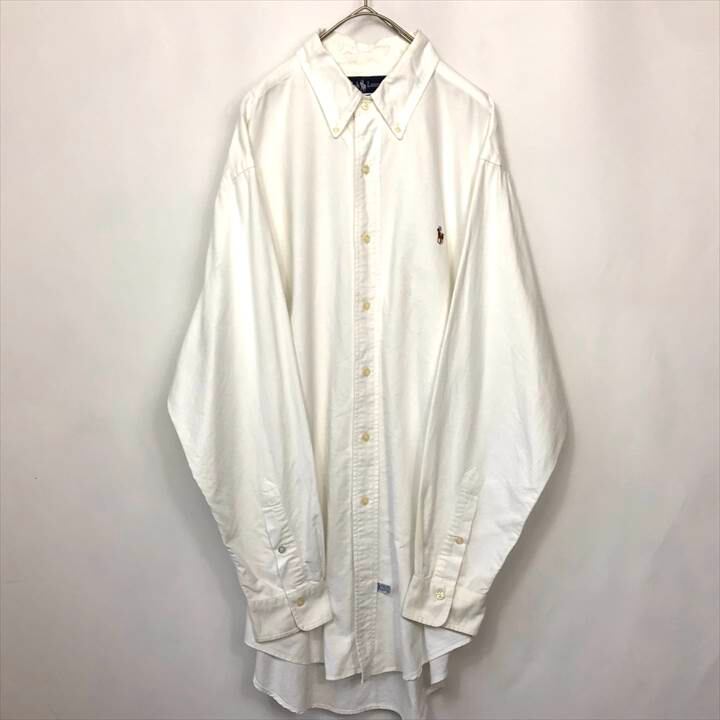 90s 古着 ラルフローレン BDシャツ オーバーサイズ 刺繍ロゴ 白 L