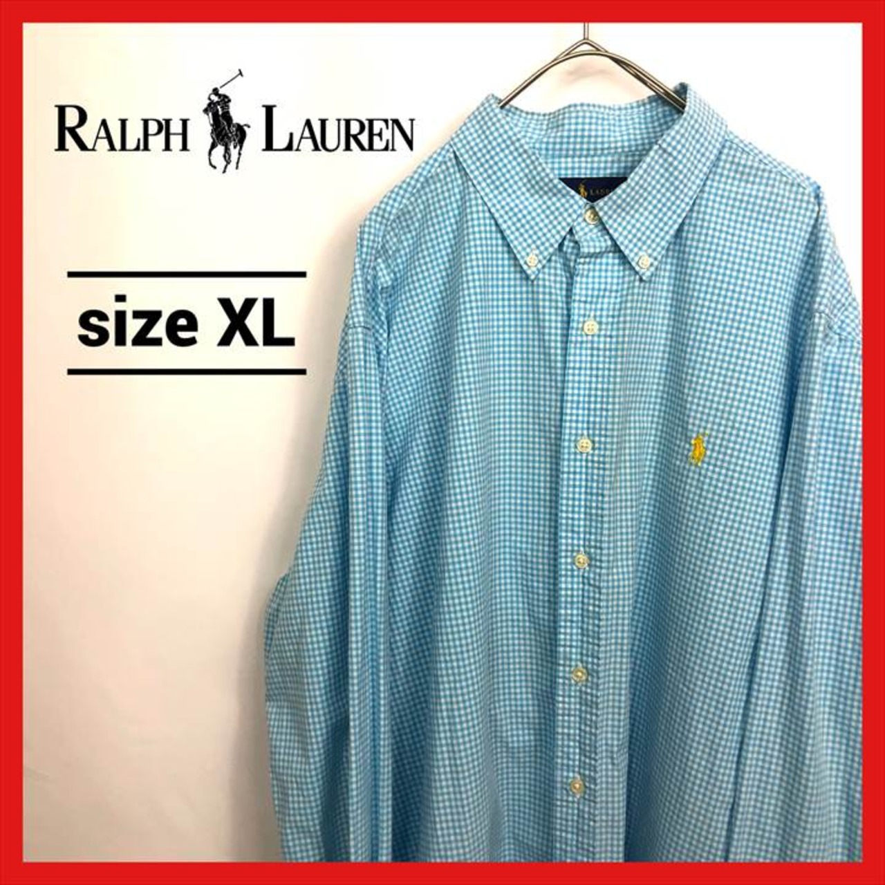 90s 古着 ラルフローレン BDシャツ オーバーサイズ チェック 刺繍 XL