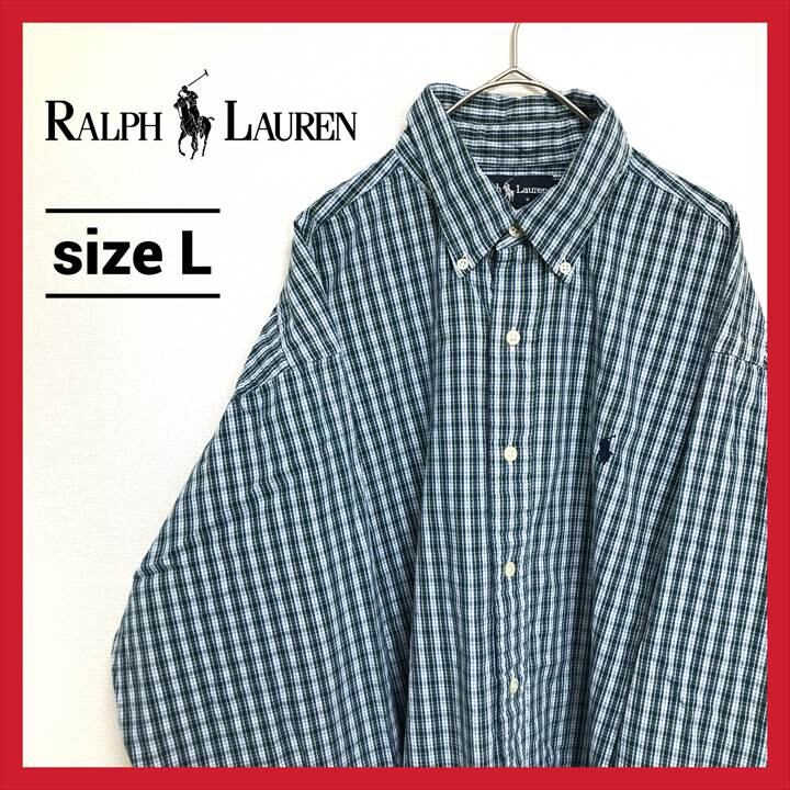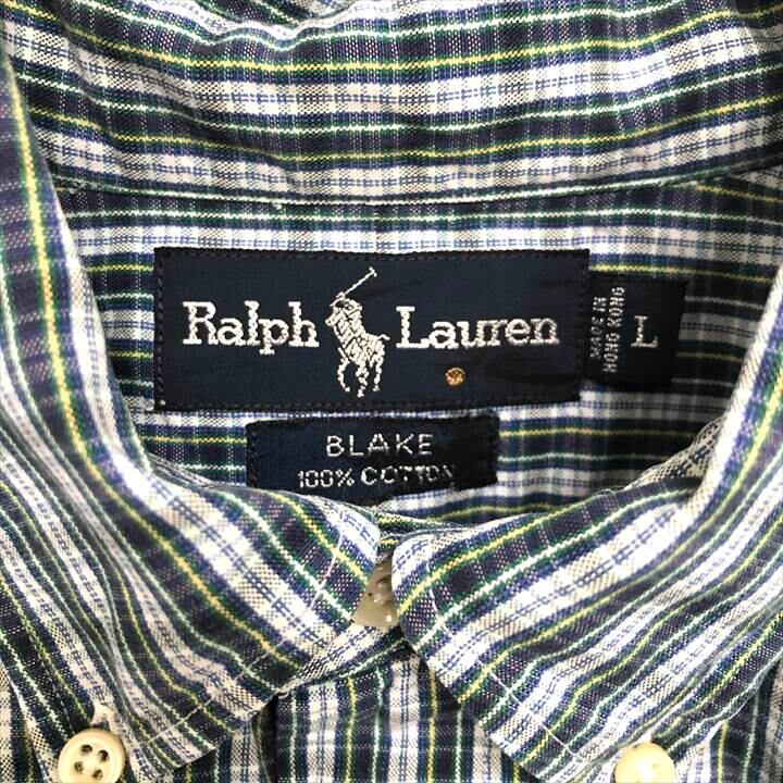 90s 古着 ラルフローレン BDシャツ オーバーサイズ チェック 刺繍 L