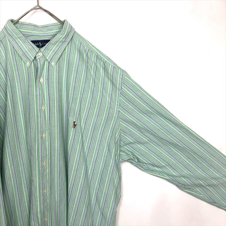 90s 古着 ラルフローレン BDシャツ オーバーサイズ ストライプ 3XL