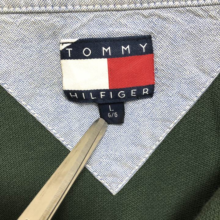90s 古着 トミーヒルフィガー ポロシャツ オーバーサイズ 刺繍ロゴ L