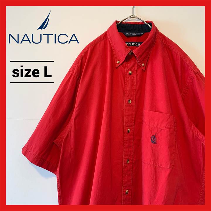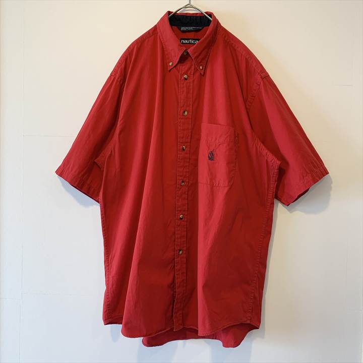 90s 古着 ノーティカ 半袖シャツ オーバーサイズ 刺繍ロゴ ワンポイント L