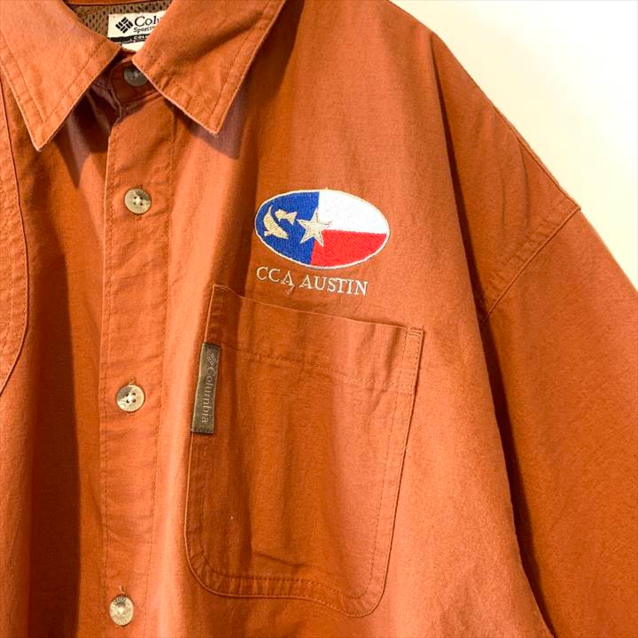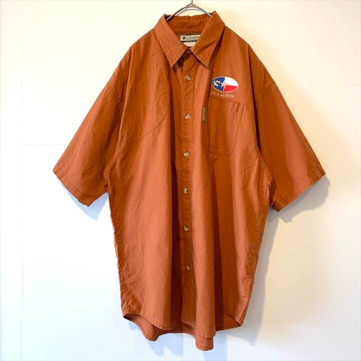 90s 古着 コロンビア 半袖シャツ オーバーサイズ 刺繍 ワンポイント M