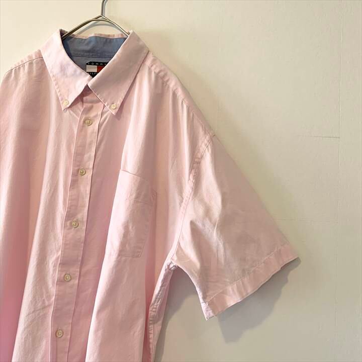90s 古着 トミーヒルフィガー 半袖シャツ オーバーサイズ 刺繍ロゴ XL