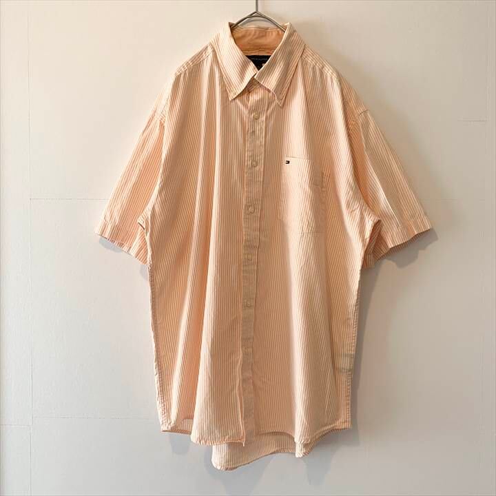 90s 古着 トミーヒルフィガー 半袖シャツ オーバーサイズ ストライプ L