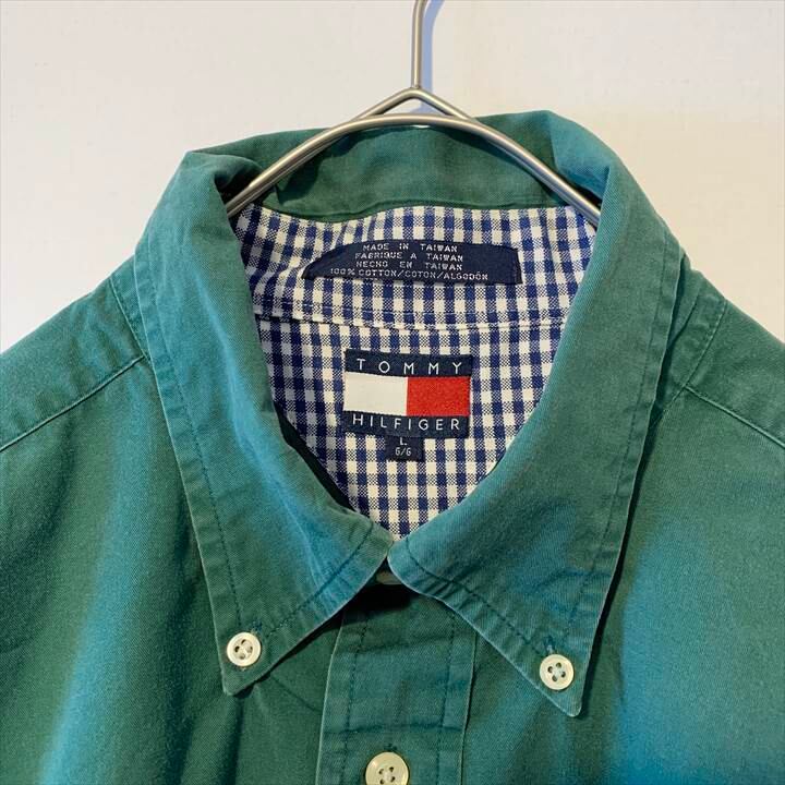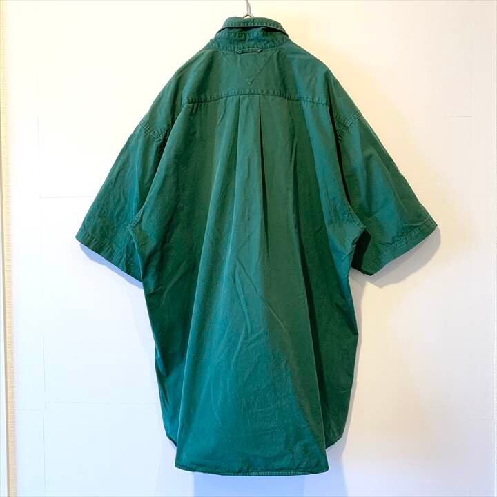 90s 古着 トミーヒルフィガー 半袖シャツ オーバーサイズ 刺繍ロゴ L