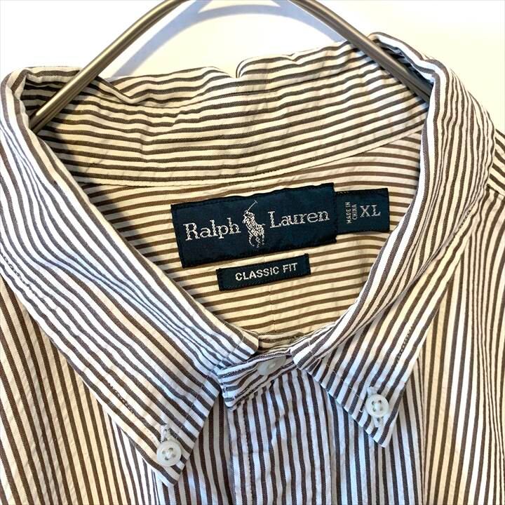 90s 古着 ラルフローレン 半袖シャツ オーバーサイズ ストライプ XL