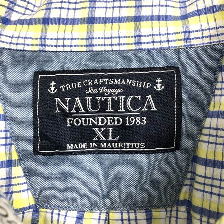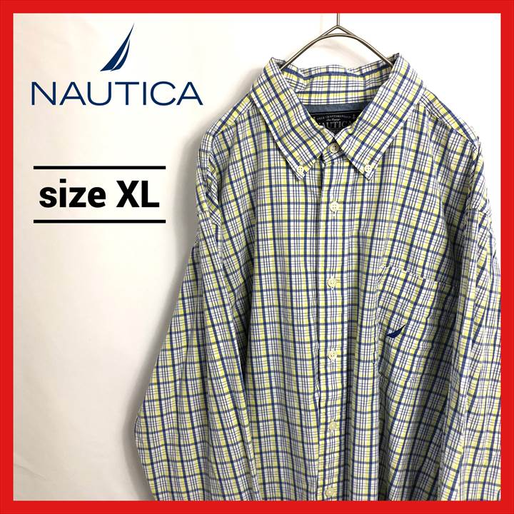 90s 古着 ノーティカ BDシャツ オーバーサイズ チェック 刺繍ロゴ XL