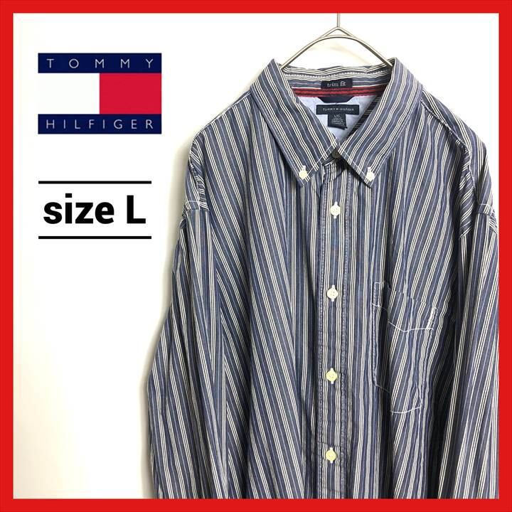 90s 古着 トミーヒルフィガー BDシャツ オーバーサイズ ストライプ L
