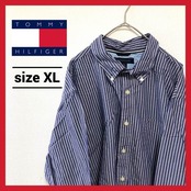 90s 古着 トミーヒルフィガー BDシャツ ストライプ オーバーサイズ XL