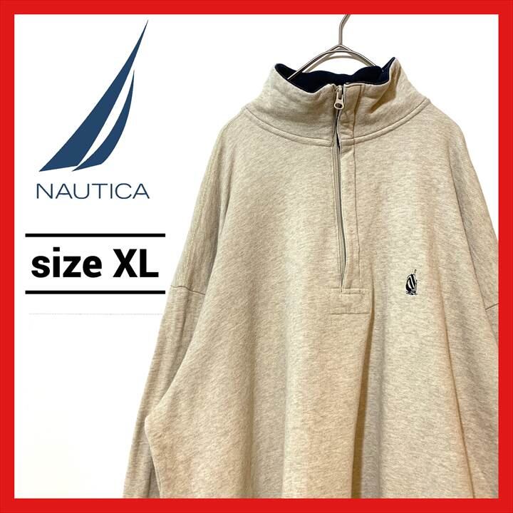 90s 古着 ノーティカ スウェット トレーナー ハーフジップ 刺繍ロゴ XL