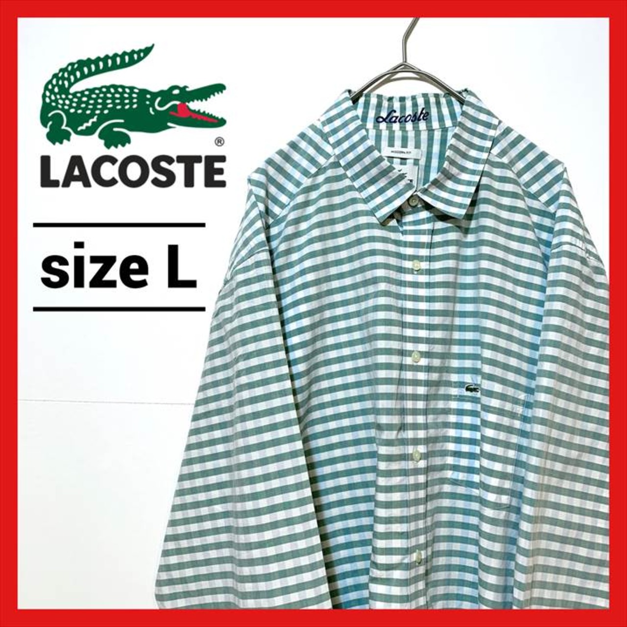 90s 古着 ラコステ 長袖シャツ 刺繍ロゴ ボーダー ゆるダボ L