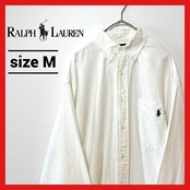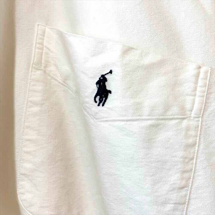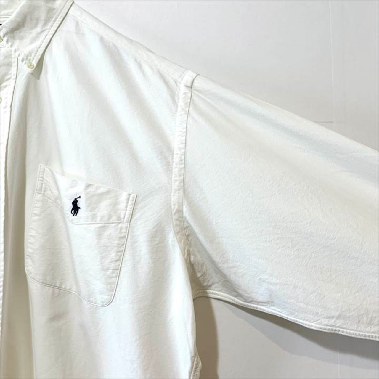 90s 古着 ラルフローレン BDシャツ 刺繍ロゴ ゆるダボ 白シャツ M