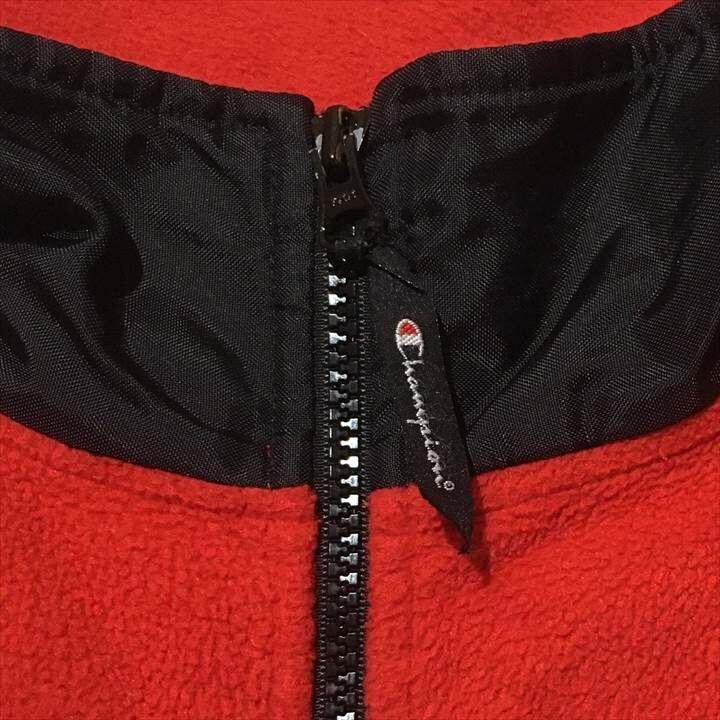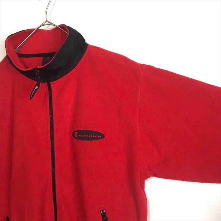 90s 古着 チャンピオン フリース フルジップ 刺繍ロゴ ワンポイント L