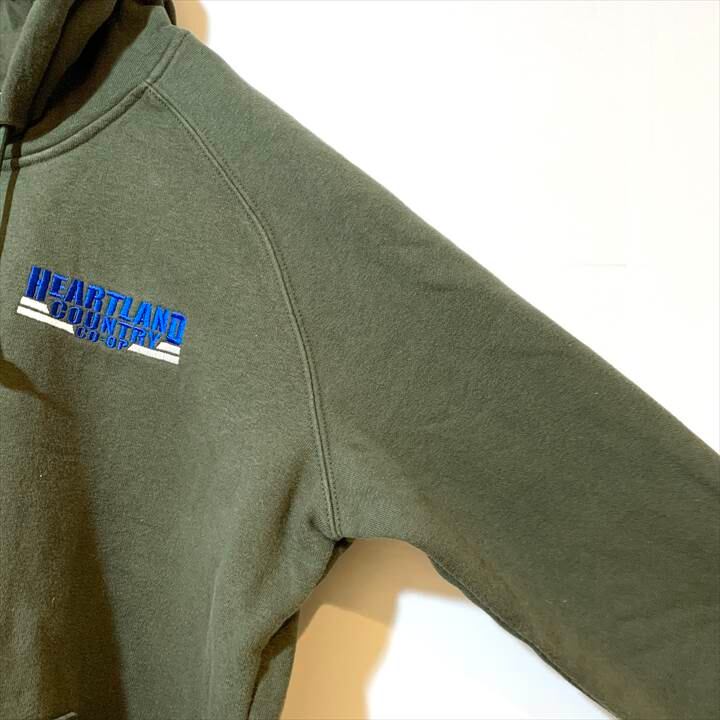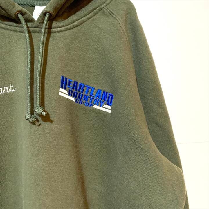 90s 古着 カーハート スウェット パーカー 企業ロゴ 刺繍 ゆるダボ L