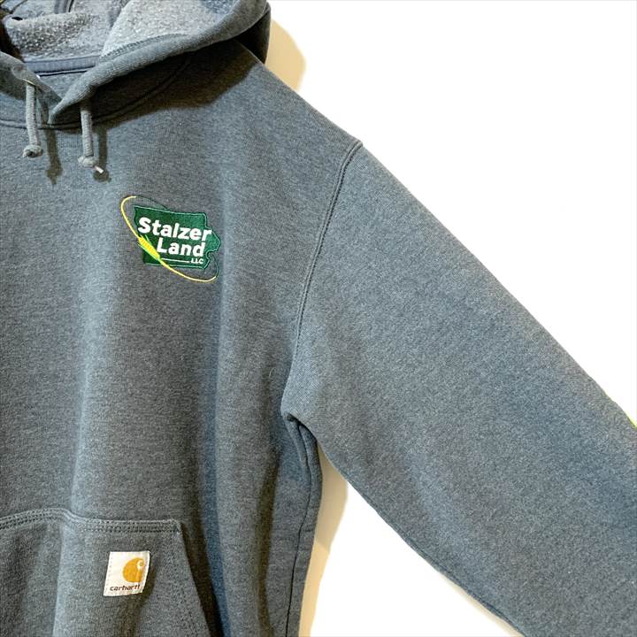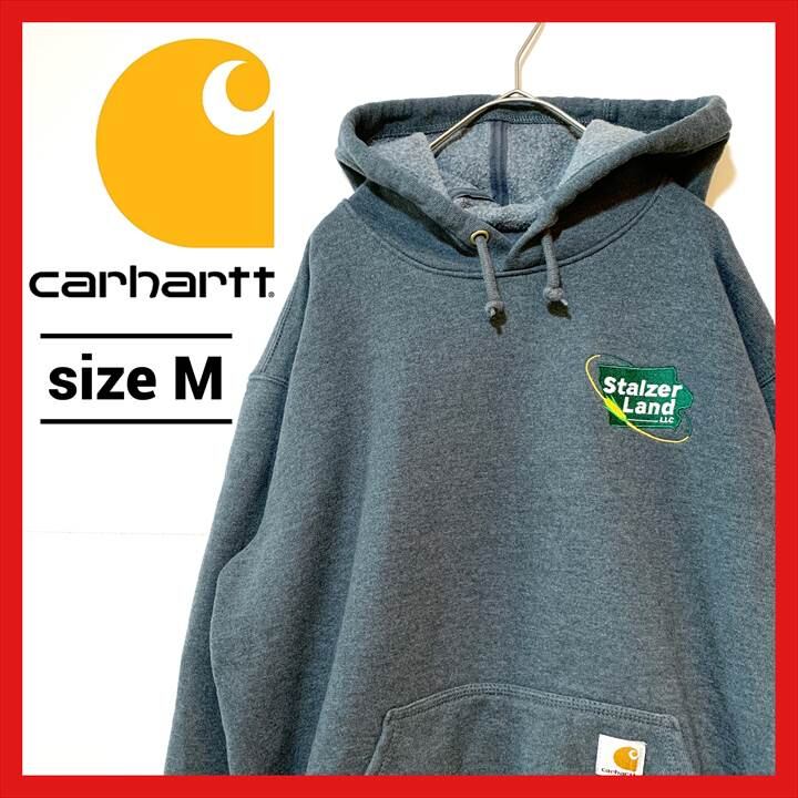 90s 古着 カーハート スウェット パーカー 企業ロゴ 刺繍 アームロゴ M