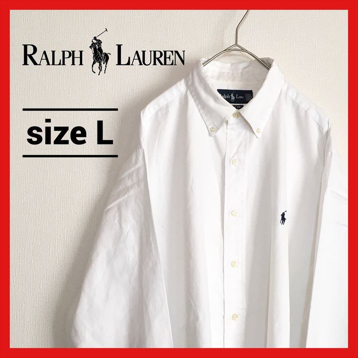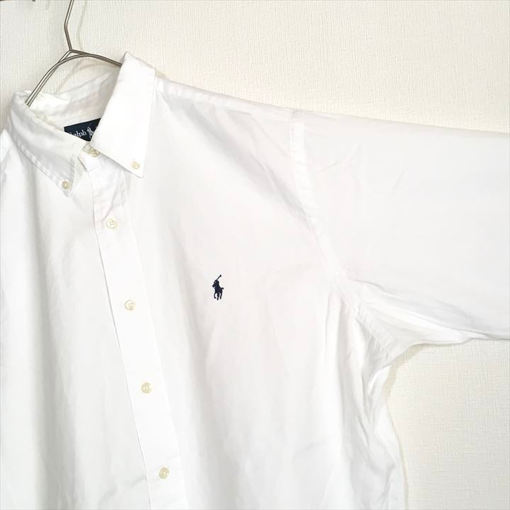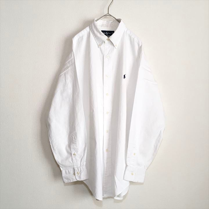 90s 古着 ラルフローレン BDシャツ 白シャツ 刺繍ロゴ ゆるダボ L