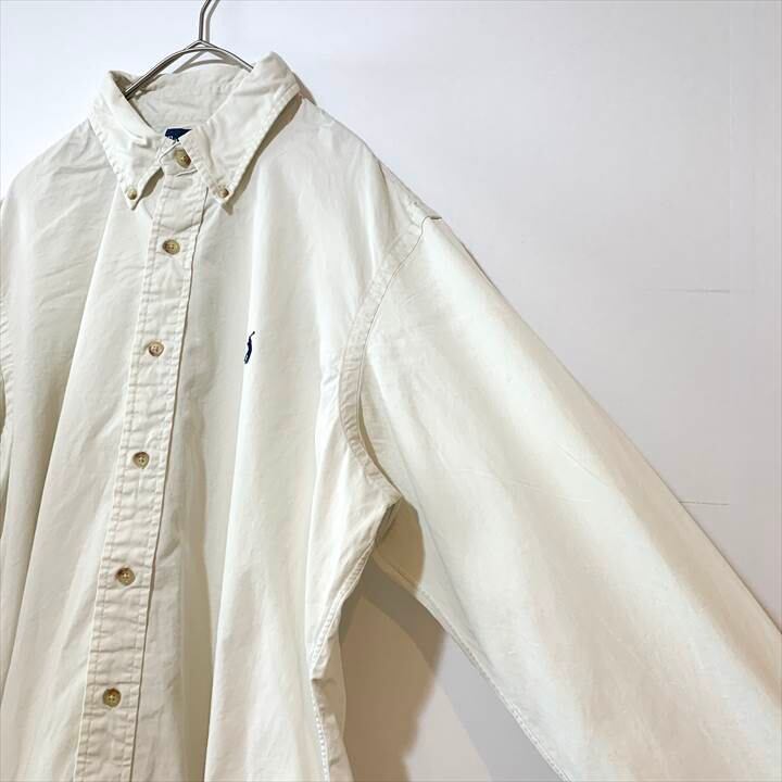 90s 古着 ラルフローレン BDシャツ 白シャツ 刺繍ロゴ ゆるダボ L