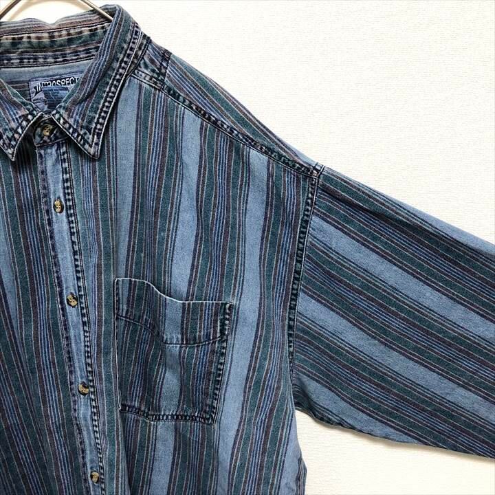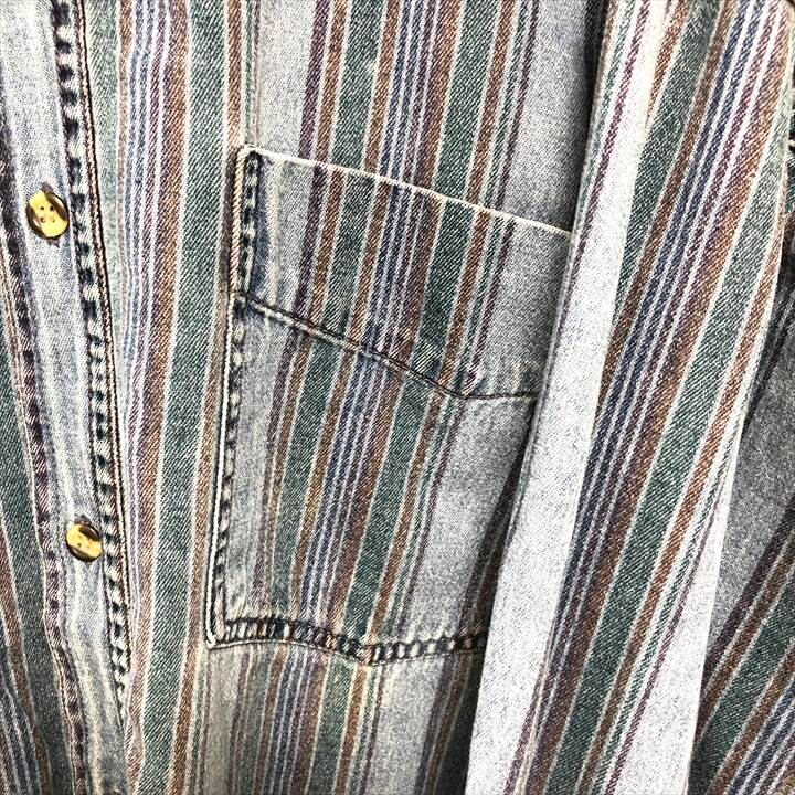 90s 古着 ノーブランド BDシャツ ストライプ ゆるダボ L