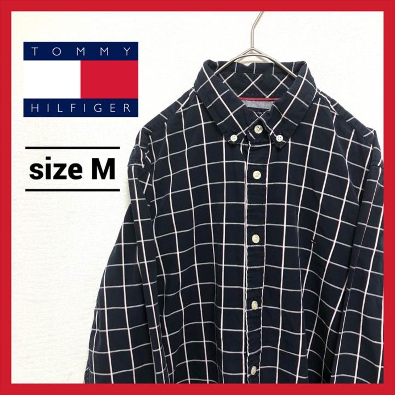 90s 古着 トミーヒルフィガー BDシャツ チェック 刺繍ロゴ ゆるダボ M