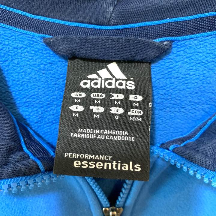 90s 古着 アディダス スウェット パーカー フルジップ 刺繍ロゴ 三本線 M
