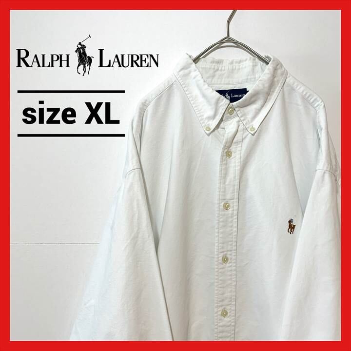90s 古着 ラルフローレン BDシャツ 白シャツ 刺繍ロゴ ゆるダボ XL