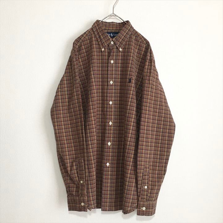 90s 古着 ラルフローレン BDシャツ チェックシャツ ゆるダボ 刺繍 L