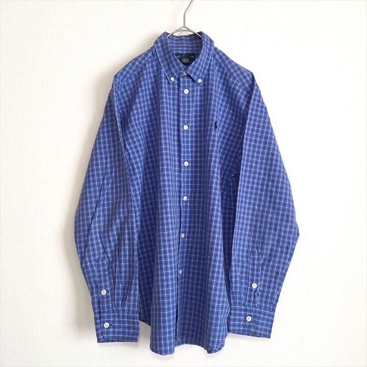 90s 古着 ラルフローレン BDシャツ チェック ゆるダボ 刺繍 レディースL