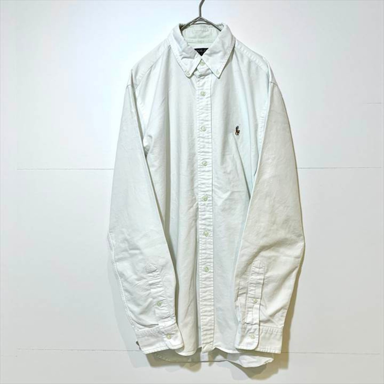 90s 古着 ポロラルフローレン BDシャツ 白シャツ ゆるダボ 刺繍 M