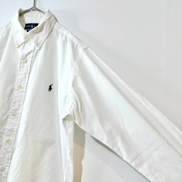 90s 古着 ラルフローレン BDシャツ 白シャツ ゆるダボ 刺繍ロゴ L