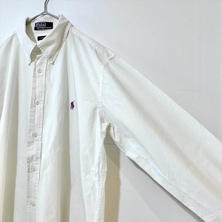 90s 古着 ポロラルフローレン BDシャツ 白シャツ ゆるダボ 刺繍 M