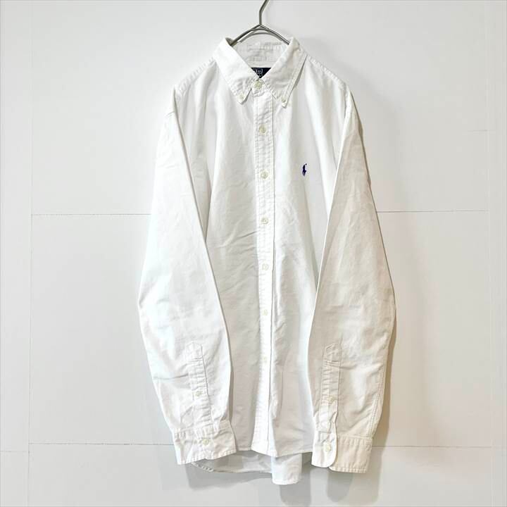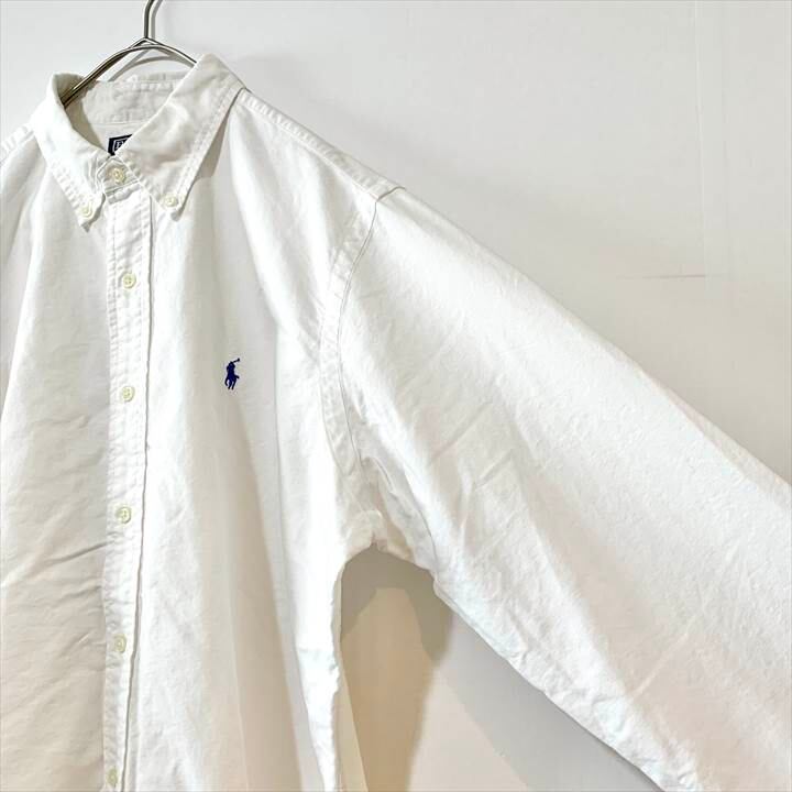 90s 古着 ポロラルフローレン BDシャツ 白シャツ ゆるダボ 刺繍ロゴ L