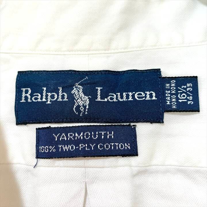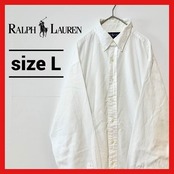 90s 古着 ラルフローレン BDシャツ 白シャツ ゆるダボ 刺繍ロゴ L