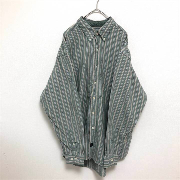 90s 古着 ノーブランド BDシャツ ストライプ ゆるダボ L
