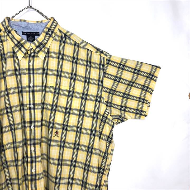 90s 古着 トミーヒルフィガー 半袖シャツ 刺繍 ゆるダボ 旧ロゴ 4XL