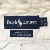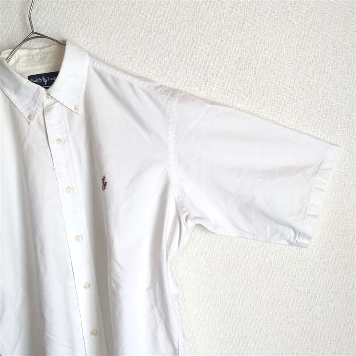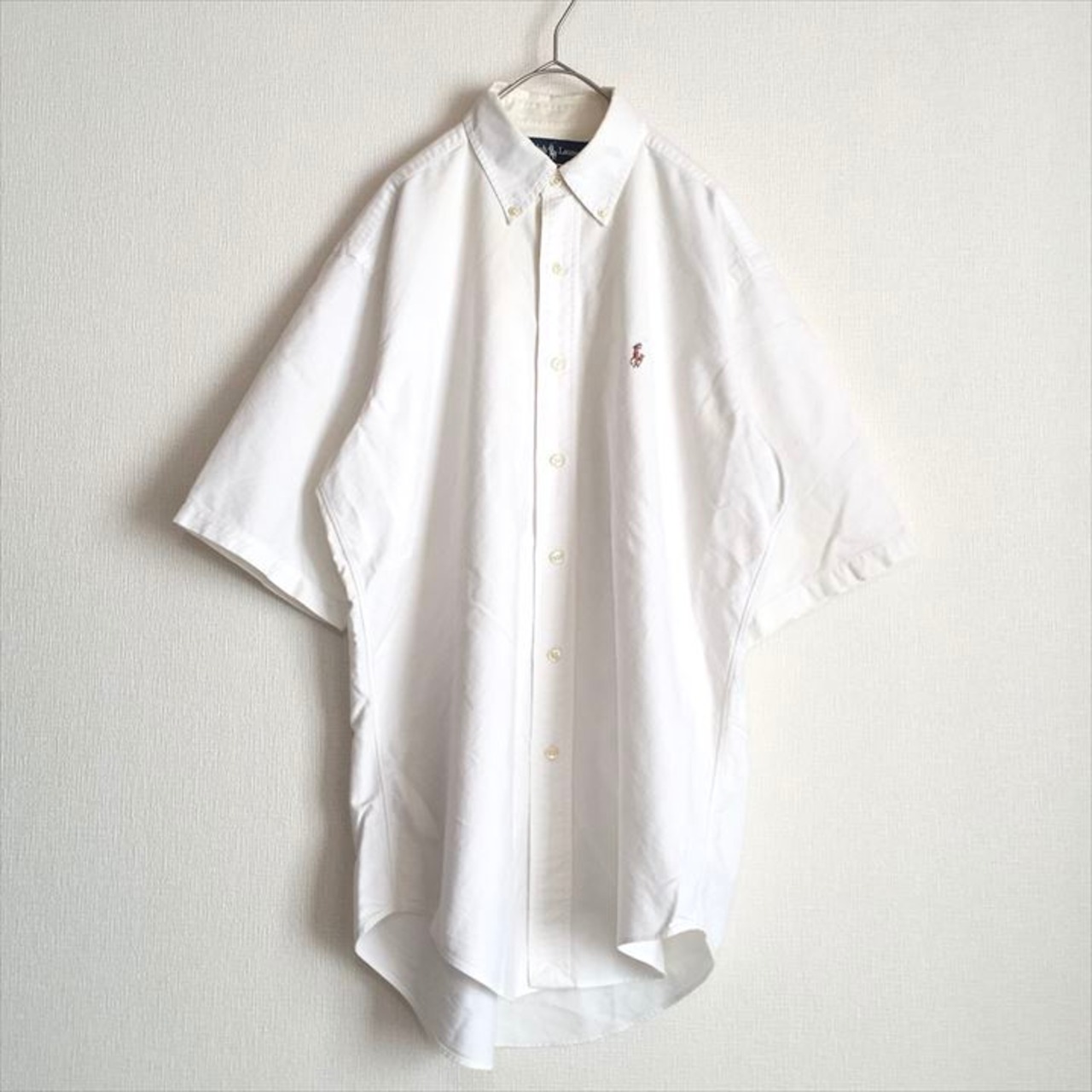 90s 古着 ラルフローレン 半袖シャツ 白シャツ 刺繍ロゴ ゆるダボ M