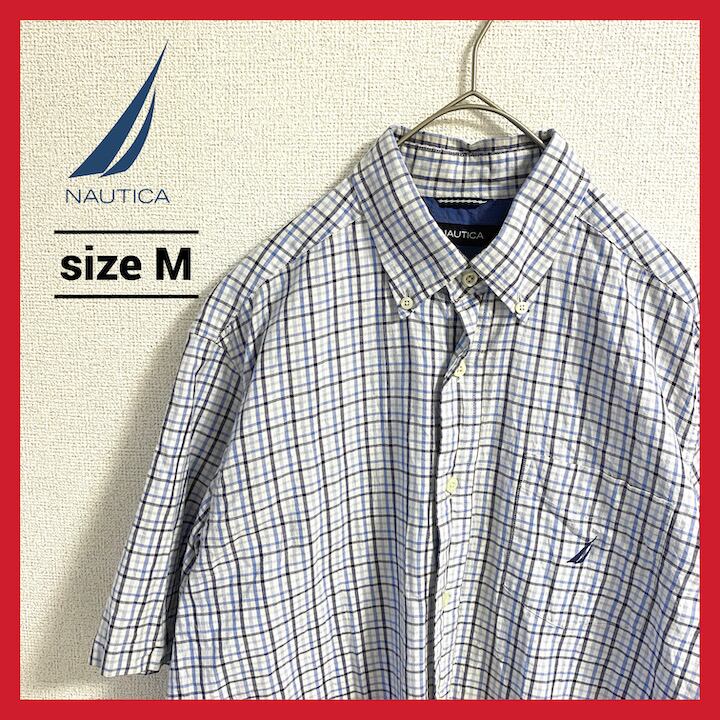 90s 古着 ノーティカ 半袖シャツ 刺繍ロゴ ゆるダボ チェック M