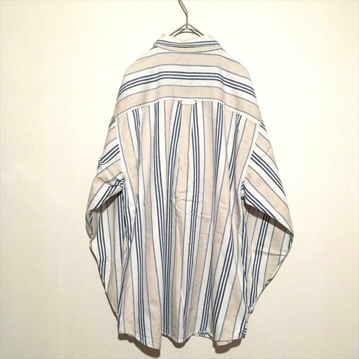 90s 古着 ノーブランド BDシャツ ストライプ ゆるダボ L