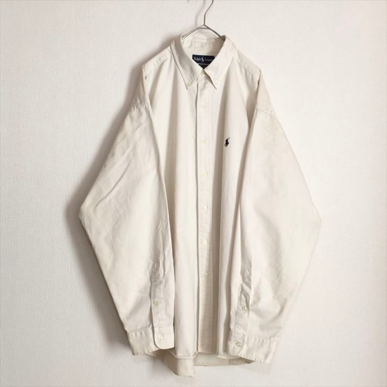 90s 古着 ラルフローレン BDシャツ 白シャツ オーバーサイズ 刺繍 XL